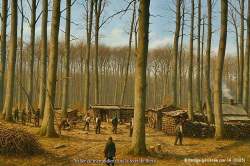 Les ateliers en forêt, prennent ainsi place autour des loges, elles mêmes situées au cœur des ventes. La maison Gauthereau a été la dernière à fabriquer le merrain en forêt.