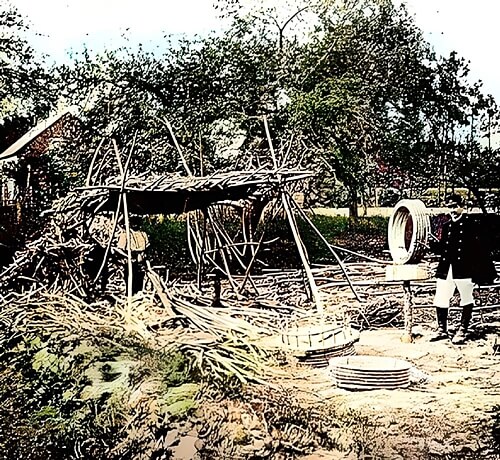 En effet, de 1919 à 1931 nombre de pins ont subit cette traumatisante expérience du gemmage. Mais ces ateliers n’ont pas su attirer, contrairement à ceux du merrain l’attention des photographes. Les bois de merrains étaient transformés en douelles pour barriques dans les ateliers situés en forêt ou dans les villages, tels ceux des tonneliers huiliers, recensés par Lucette Bardet de Château du Loir : 1755 : René Savignard (la Huberdière) 1806 : Pierre Savignard (Thoiré) et Jean Savignard 1843 : Prospère Savignard (Volumiers) Ou plus proche de nous, celui d’Albert Gateau, artisan tonnelier à St Vincent du Lorouër (1891-1987)