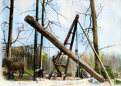 Au tout début, seule la traction animale était capable de sortir les bois de la forêt. Chevaux et charretiers formaient couples. L’homme pouvait tout aussi bien se servir des bœufs, bêtes de somme par excellence dont la toponymie en célèbre la gloire dans le canton du Tertre aux Bœufs.