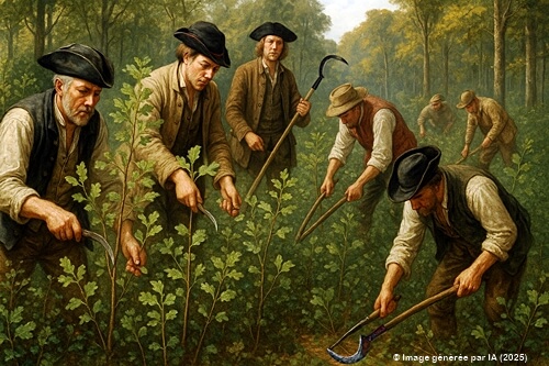 Tacherons forestiers du 18e siècle en dégagement de jeunes chênes