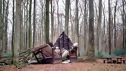 Les morceaux d’une caravane stationnée à Laillé atterrissent près de chez lui aux Renardières. Le ciel s’est subitement obscurci de feuilles et de poussières.
