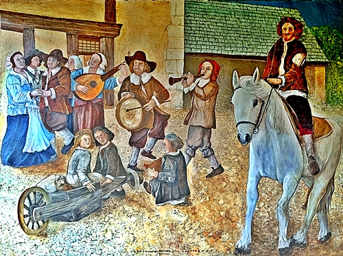 Fresque de Yannick Sepré sur la vie de Martin Lambert, d’après la vie des personnages peints sur la voute de l’église paroissiale de Saint Vincent du Lorouër.